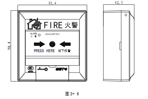 J-SAM-GST9121海灣消防手動(dòng)火災(zāi)報(bào)警按鈕外形示意圖如圖2- 6。