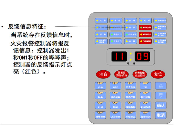 控制器可配置多塊手動消防啟動盤,完成對總線制外控設(shè)備的手動控制;可配置多塊14路直接控制盤,完成對消防控制系統(tǒng)中重要設(shè)備的控制;可擴(kuò)充消防廣播控制盤和消防電話控制盤,組成消防廣播和消防電話系統(tǒng);每個回路最多可同時配置4臺64點手動消防啟動盤+4臺14路直接控制盤+兩個消防廣播控制盤(或2個消防電話控制盤或1個消防廣播控制盤+1個消防電話控制盤)